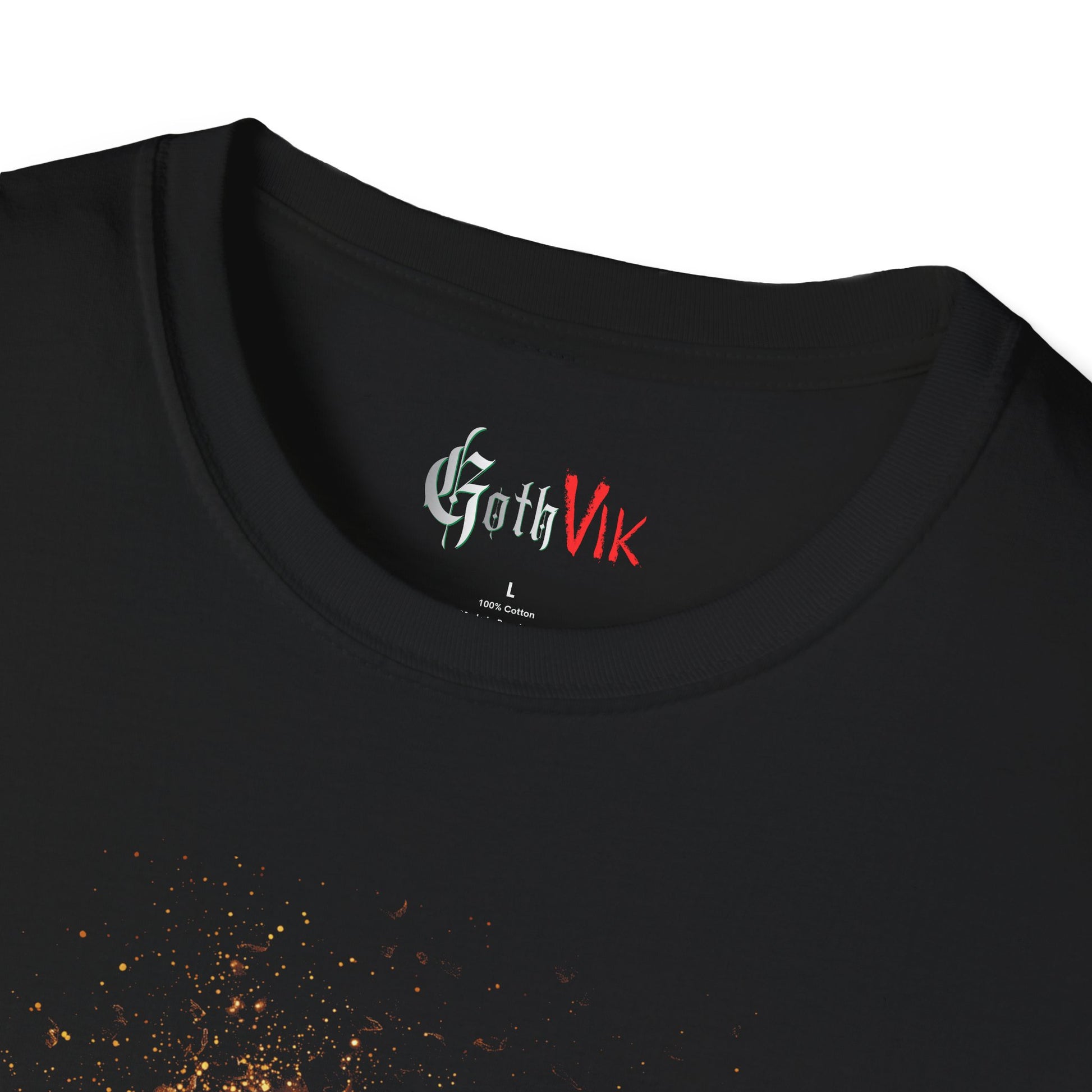 The gold ring represents commitment to new beginnings. Combined with the red color meaning strength. Berkana rune of rebirth signifies the nurturing and successful start of a valuable new phase in life. The hand-painted red Berkana rune meaning "rebirth" to signify growth and a metaphoric symbol of overcoming challenges and growing from those challenges into a new person. A new person who is stronger, more resilient, and reborn with a warrior spirit. The rough edges and brush strokes of the rune are intentionally visible — with a tiny understated caption beneath. The artwork, a warm red rune set inside a gold halo, gives the shirt an intimate, mystical vibe that settles easily into a quiet wardrobe: wear it under a flannel on a cool hike, layered with a cardigan during ritual gatherings, or solo when you want a simple symbol close to the chest.