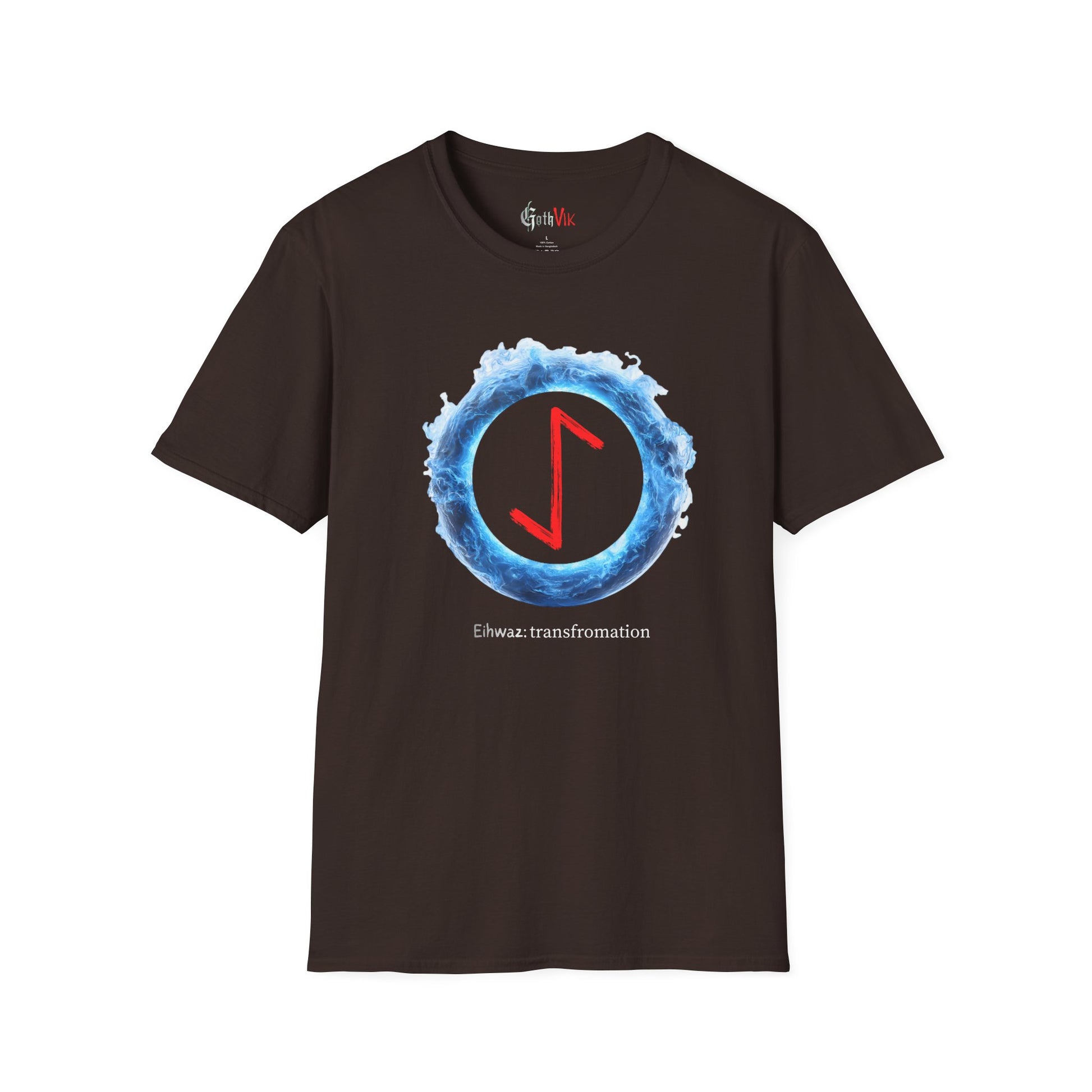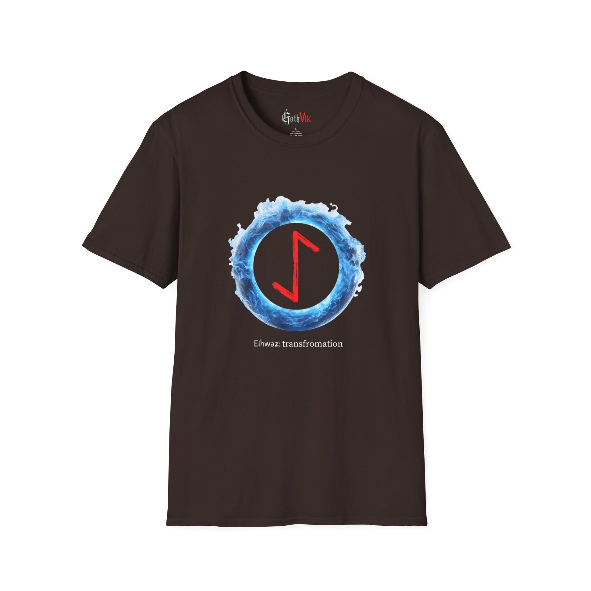 This lightweight crewneck shirt wears like a favorite from the first try. It features a vivid rune-inspired graphic framed by an electric-blue aura—an image that hints at change, inner work, and quiet power. The smooth, ring-spun cotton drapes cleanly and prints with sharp, lasting color so the glowing motif stays bold through washes. Wear it alone under a jacket or layered with a flannel when you want an everyday piece that feels thoughtful rather than loud. The subtle text beneath the symbol invites a second look and gives the shirt a contemplative, slightly mystical edge that fits both city streets and late-night creative sessions.
