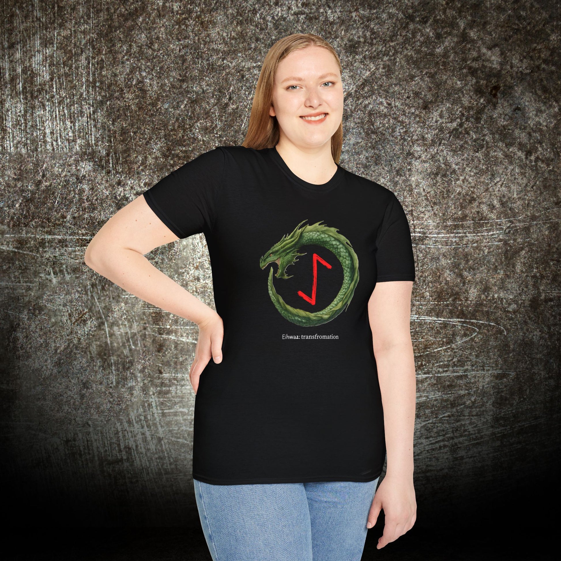Women's Green Ouroboros Transformation Eihwaz Norse Viking Rune T-Shirt